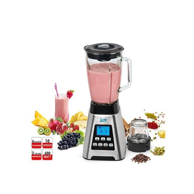 توان نامي 600 وات، داراي 10 سرعت مختلف، داراي صفحه نمايش LCD به رنگ آبی، دارای 8 برنامه ذخیره شده در برد، پارچ شيشه اي براي مخلوط كن به حجم 1.5 ليتر ظرف شيشه اي آسياب، تيغه شش پر مخلوط كن